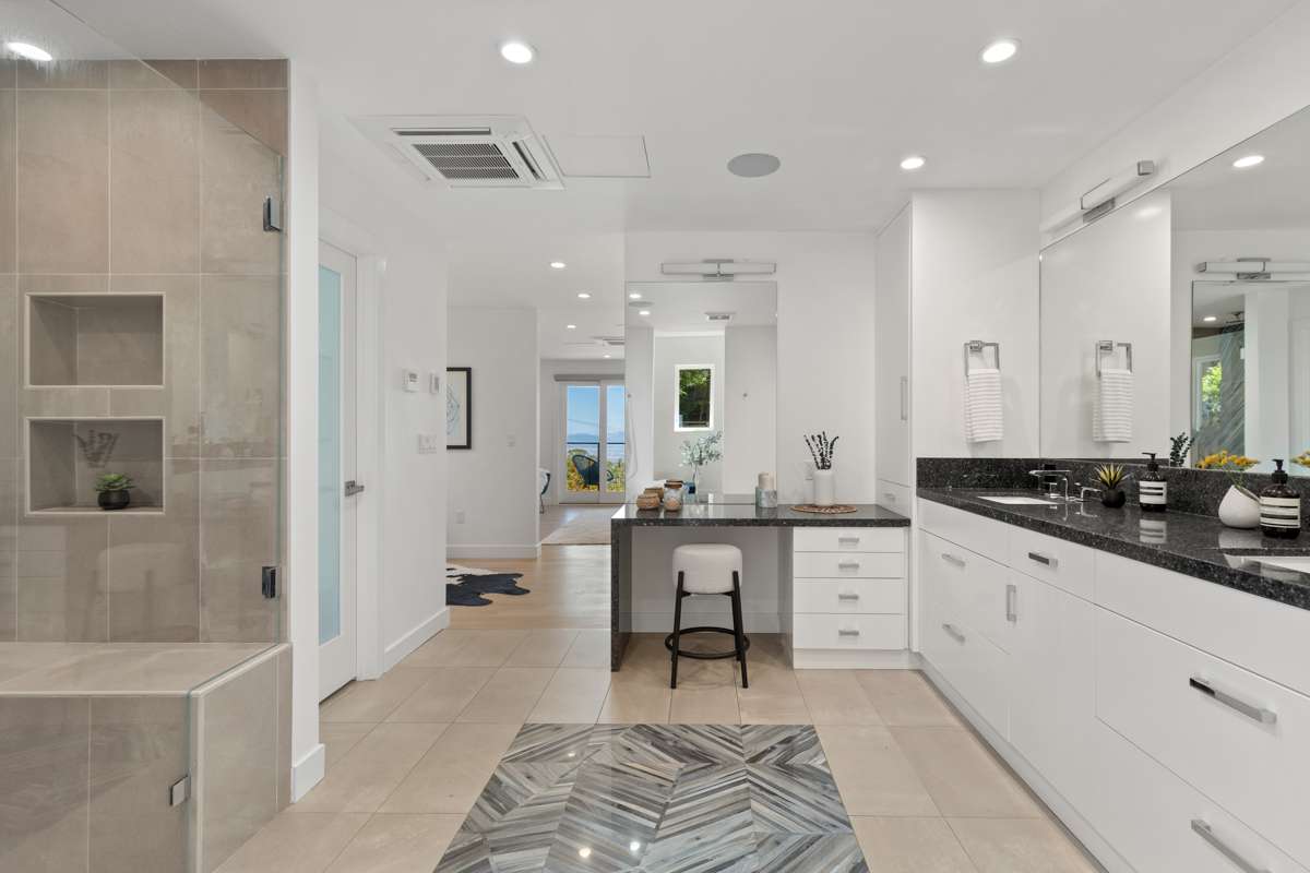 Perched above the street with sweeping vistas of the Bay and beyond, this extraordinary light-filled residence has been meticulously reimagined from the ground up to offer the epitome of modern luxury living. A rare fusion of dramatic architectural design and sophisticated, high-end finishes creates a serene yet striking retreat for the discerning buyer.